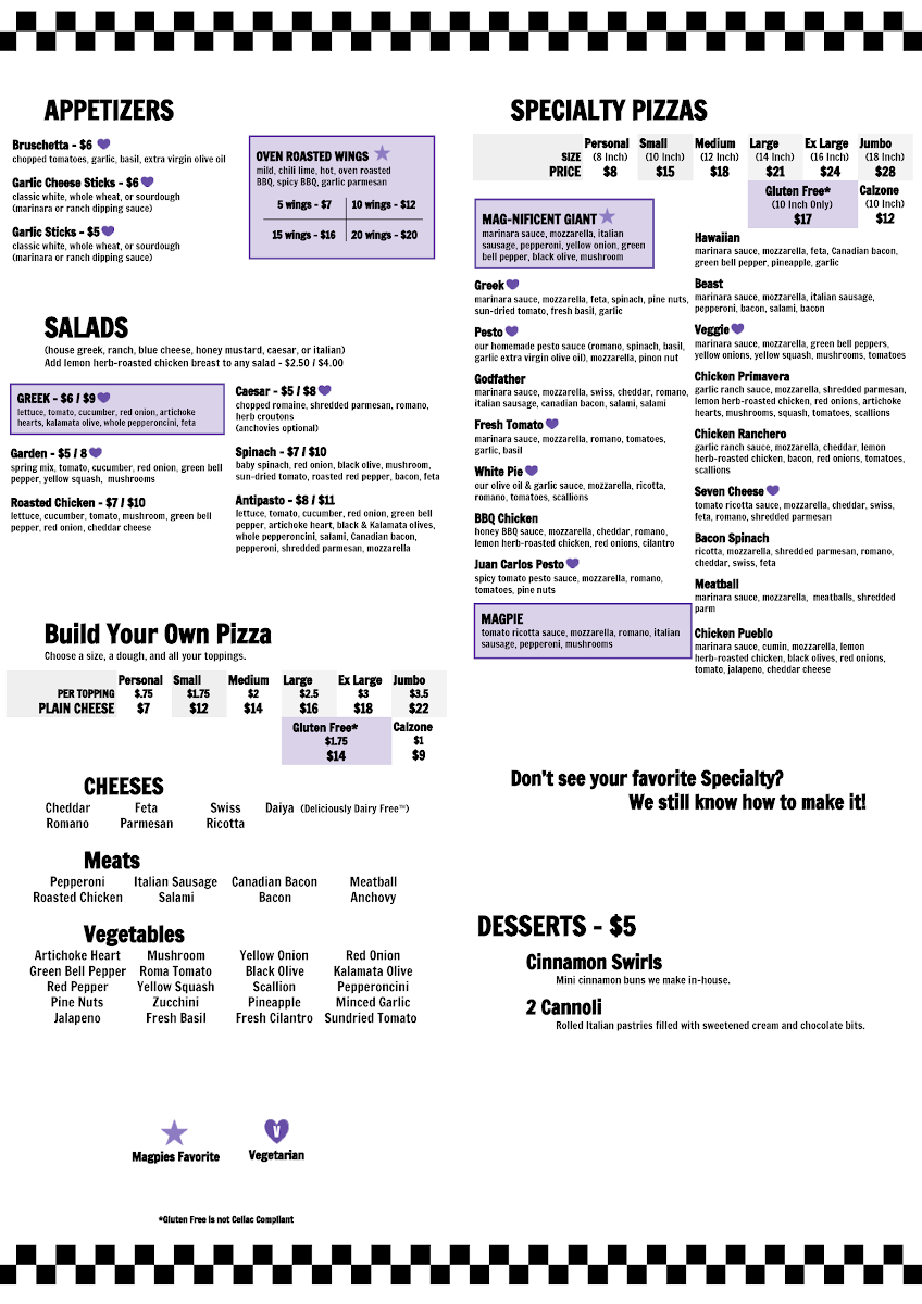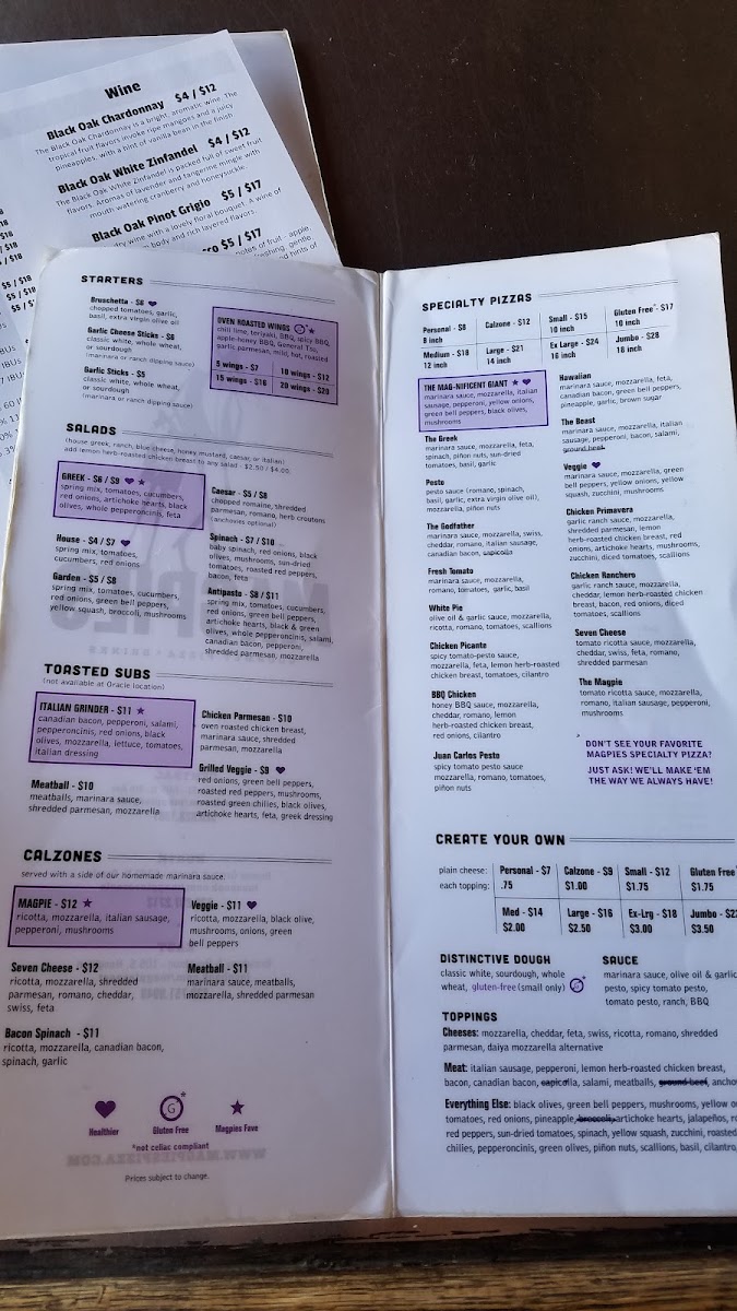 Welcome to Magpies Gourmet Pizza 4th Ave., located at 605 N 4th Ave, Tucson, AZ, where every slice tells a story. This vibrant pizzeria offers an array of gourmet pizzas alongside tantalizing wings and delectable desserts that elevate your dining experience.